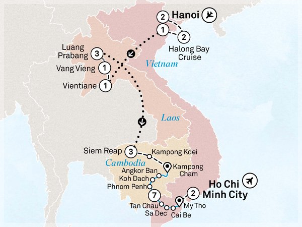 Enhance your trip by visiting vibrant Hanoi, renowned for its street food and rich history, or the serene Luang Prabang, a UNESCO World Heritage site boasting beautiful architecture. Choose from various trip lengths to fit your schedule.