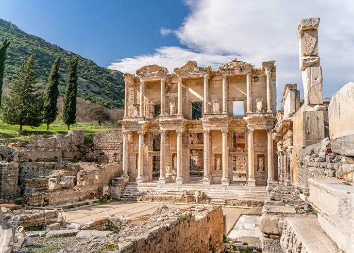 Ephesus, a marvel of ancient Greco-Roman civilisation, beckons with its remarkably well-preserved ruins. As you wander through this historic city, you'll encounter the grandeur of the Library of Celsus, with its ornate façade and impressive collection of scrolls and the vast Great Theatre, where once thousands gathered for performances.