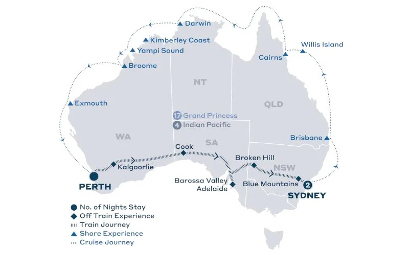 Indian Pacific + Grand Princess® • 23 Days • Departs 12 May 2027