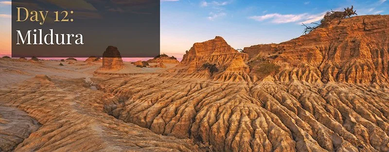 Visit the World Heritage-listed Mungo National Park for a guided tour. Here you will discover the spectacular "Walls of China" - ancient formations rising dramatically from the dried lakebed. Then travel to the riverside hub of Mildura, known for its relaxed café culture, for your overnight stay.