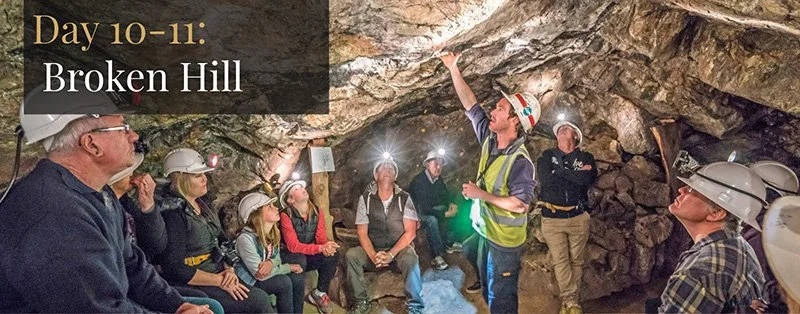 Explore Broken Hill's artistic heritage with visits to Kevin "Pro" Hart's Ant Hill Gallery and the ghost town of Silverton, famous for over 140 films, including Mad Max. Experience outback life at the Daydream Mine, tour the Royal Flying Doctors Service, and watch the sunset at the spectacular Living Desert Sculptures.